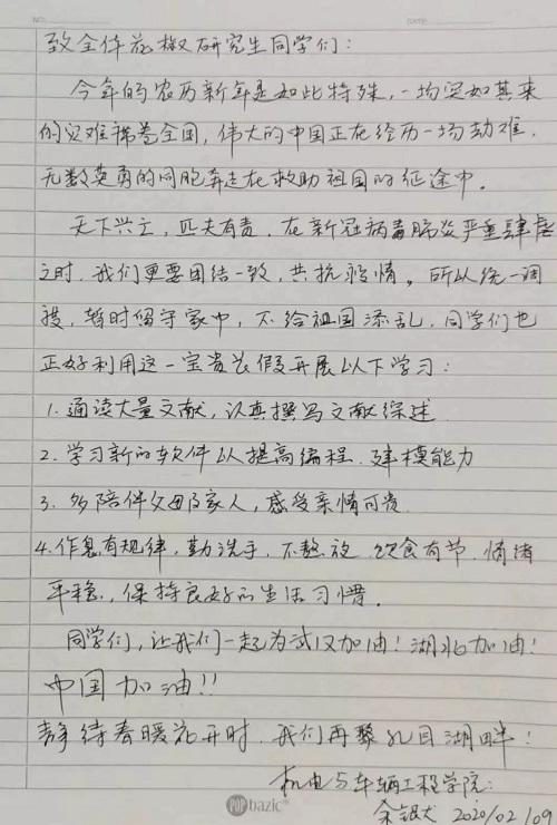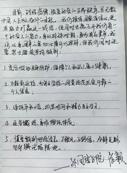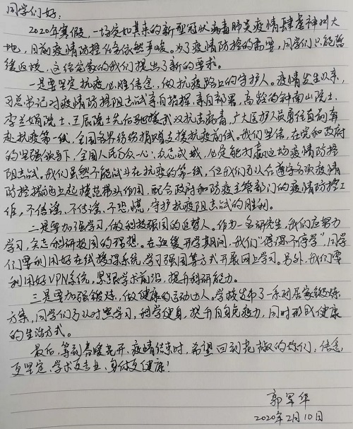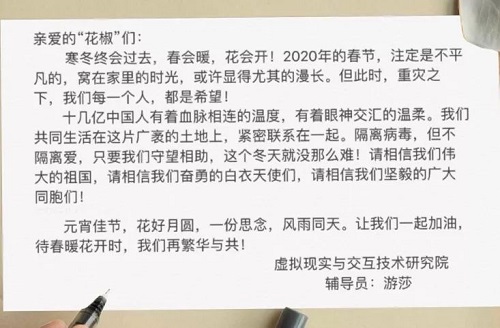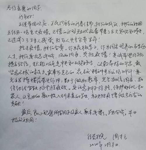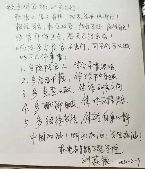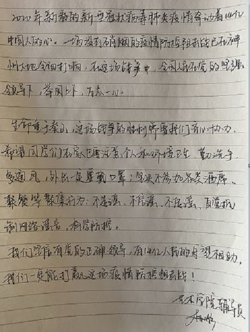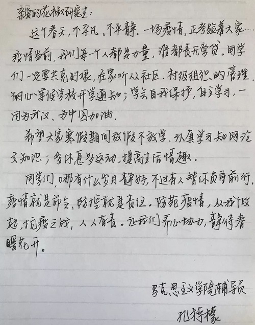 由于疫情的影响,开学日期推迟了,但学习和工作并未停止。面对疫情,应该怎么做?在家的日子,学习和生活应该怎么安排?亲爱的花椒师长将千言万语写在纸上,传送千里。