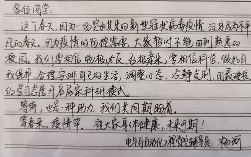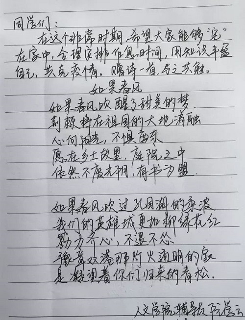 有一份寄托,夹杂着最诚挚的祝福和敬意;有一种爱,是从远方牵挂担心。那就是导师和辅导员们,未曾隔离的爱。