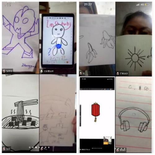 首先进行“你画我猜”的游戏,每位同学轮流作画并通过视频展示,其他同学们线上抢答,以游戏的方式缓解疫情期间“宅”在家的烦闷情绪。游戏过后,同学们依次将自己的“快乐事件”与其他人分享。在这些事件中有一些让人印象深刻:比如有同学因为假期的延长,第一次有机会与一家人整整齐齐地在家里共度了难忘的生日;有同学有了更多闲暇时间读完自己喜欢的书籍而感到充实;有同学因为在家里做起料理,有更多时间陪伴家人而感到高兴;还有同学成功预约到口罩、收到心仪公司的面试通知、考级考证取得好成绩等等,这些惊喜都让他们感到快乐,而这个互相分享的过程也是在传递正能量,丢掉烦恼。