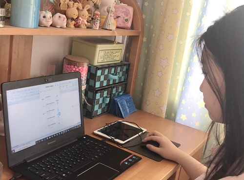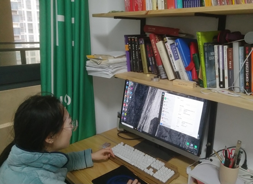 学生在家参加“云招聘”。