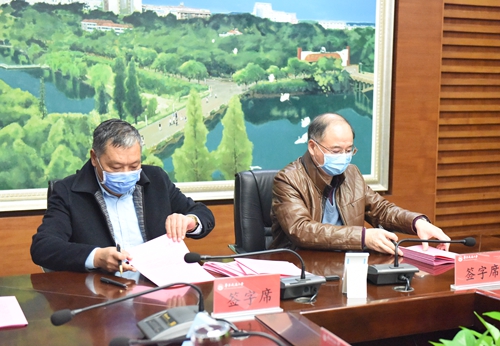 万明与校党委委员现场签订2020年度全面从严治党责任书。同时采取会后领取、不现场签字的方式,万明与各基层党委、党总支、直属党支部书记签订2020年度全面从严治党责任书和意识形态工作责任书,罗玉峰与各学院、机关处室、教辅单位行政负责人签订2020年度全面从严治党责任书。
