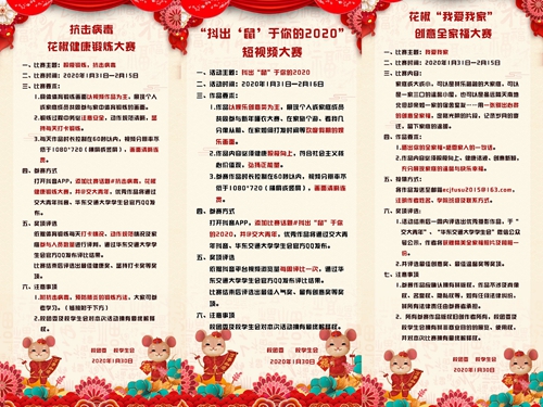 “欢迎参加家庭文化、体育、学习、娱乐线上活动,在家过一个健康平安的假期!”疫情刚发生不久,“交大青年”“花椒先锋”微信公众号便积极策划开展书海拾贝、创意全家福、短视频大赛、健康锻炼大赛等“‘宅’家才艺大比拼”线上活动,推出“集思广‘疫’花椒说”线上专栏,教育引导广大青年学生充分利用假期,努力提升自我,丰富精神生活。