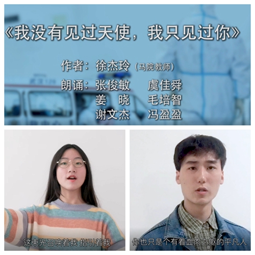 老师写诗,学生朗诵,隔空合作录制《我没有见过天使,我只见过你》抗疫短视频。