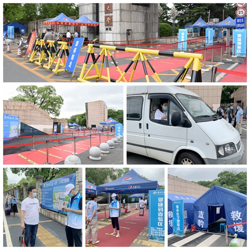 本次演练分别模拟了公共交通接站点报到、自驾返校报到、进入宿舍、食堂就餐等场景,涵盖了正常学生报到、无法证明身份学生报到、重点地区学生返校报到等各类情况,以及体温异常、健康码异常、扫码出现异常等应急处置环节。全体演练人员尽可能地模拟真实场景,在实战中细化完善应急方案,演练过程紧张有序。