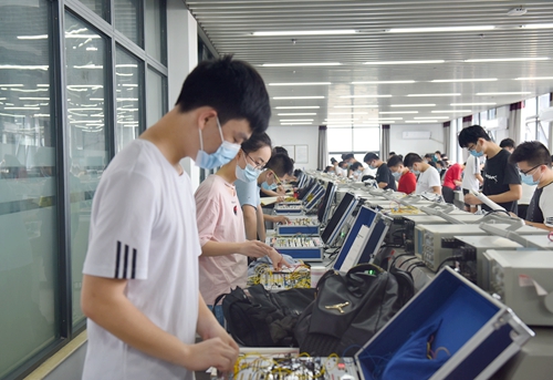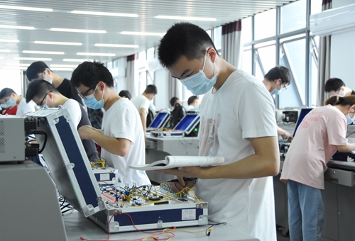 “这门课程实验操作性强,如果没有实验环节的话,我很难切身感受具体细节和消化纯理论知识。”虽然已进入6月,天气越来越闷热,“但能回到学校做实验,我十分开心!”2018级电气工程及其自动化专业学生刘俊睿说。(欧阳桑瑞 摄)