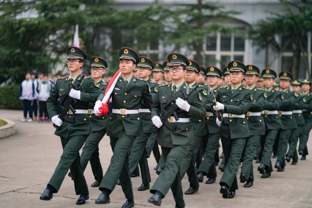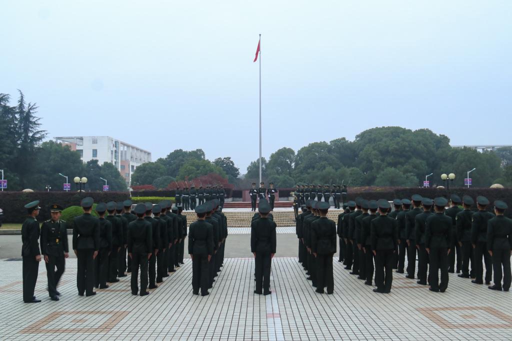 “开始!”随着校党委书记万明一声令下,国旗护卫队队员昂首挺胸、精神抖擞,迈着整齐有力的步伐走向升旗台。“升国旗,奏唱国歌!”广场上唱响铿锵有力的国歌声,全体人员神情庄重,向冉冉升起的五星红旗行注目礼。