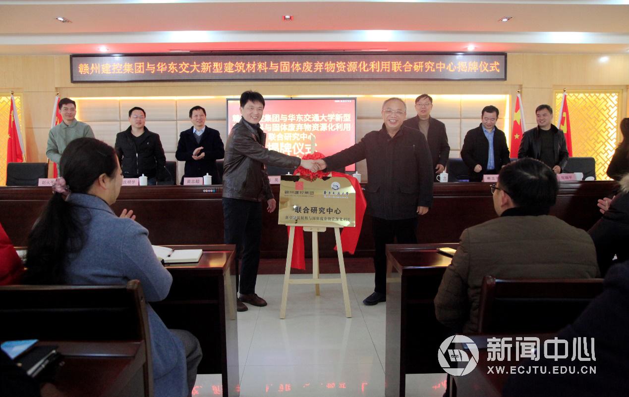 副校长陈梦成,赣州建控集团党委书记、董事长胡昊共同为联合研究中心揭牌。