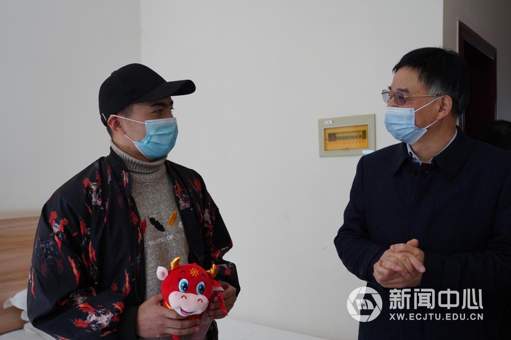 春日伊始,美好启新。2月3日上午,校党委书记万明来到铁路环境振动与噪声教育部工程研究中心、成教公寓及北区二食堂,走访慰问寒假留校学子,并送上200元小年“现金券”、70元小年“餐券”及牛年吉祥物等慰问品。校党委副书记肖长春、副校长杨辉一同慰问。
