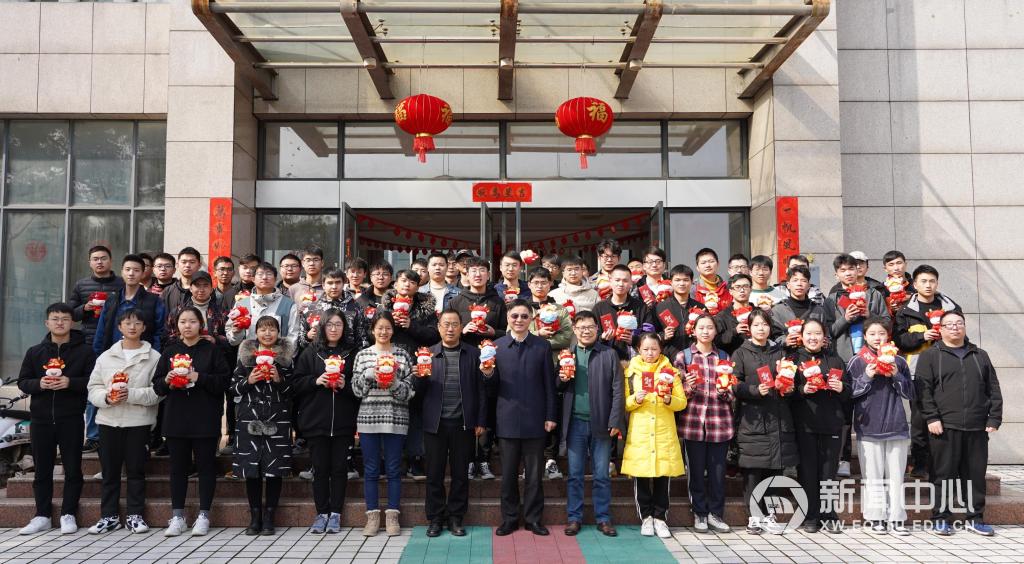 万明为留校学生送上小年慰问品。