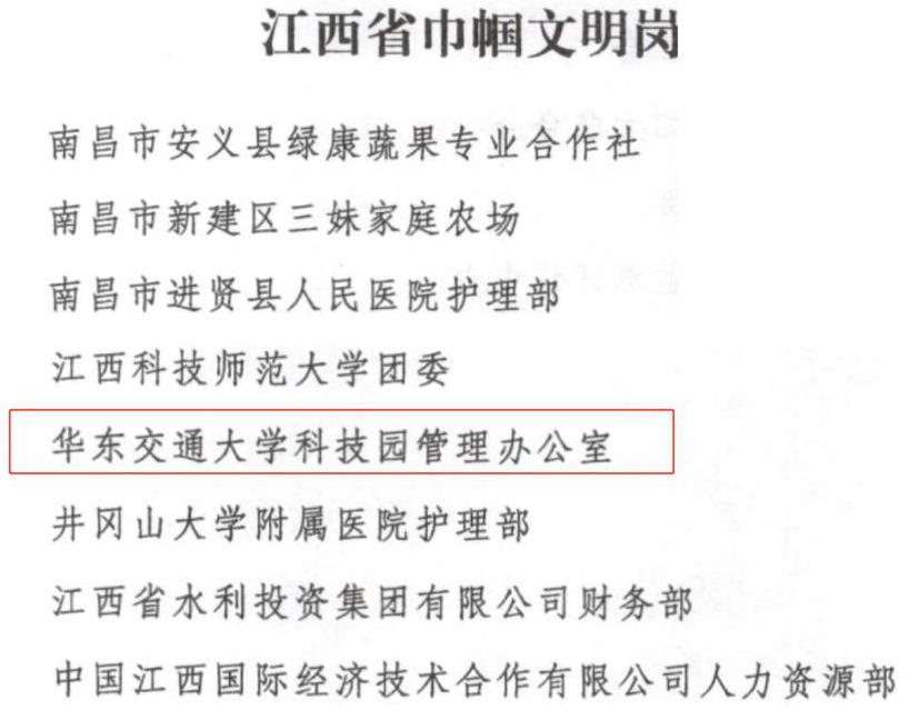 日前,江西省妇女联合会印发《江西省妇联关于表彰江西省城乡妇女岗位建功先进个人、先进集体的决定》,开元科技园管理办公室荣获“江西省巾帼文明岗”称号。