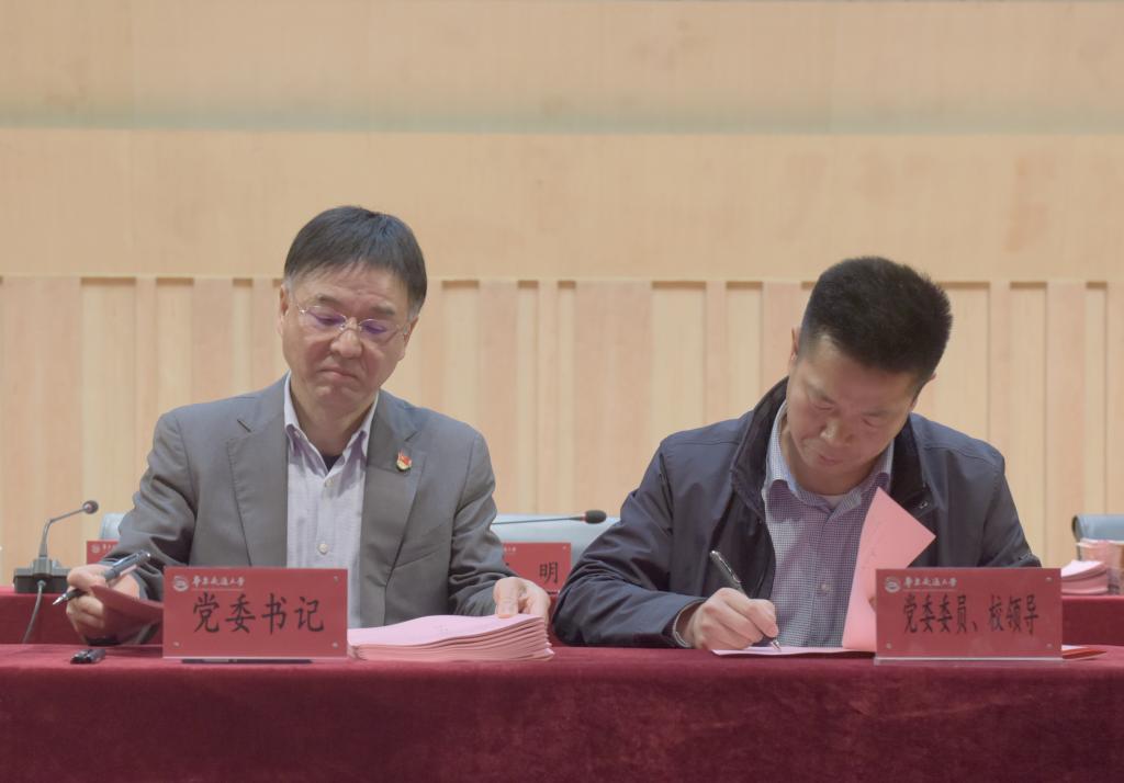 万明与党委委员、校领导签订2021年度全面从严治党主体责任书,与各基层党委、党总支、直属党支部书记签订2021年度全面从严治党主体责任书、意识形态工作责任书、平安建设责任书。校党委副书记、副校长徐长节与各学院、机关处室、教辅单位负责人签订2021年度全面从严治党主体责任书、平安建设责任书、消防安全责任书。