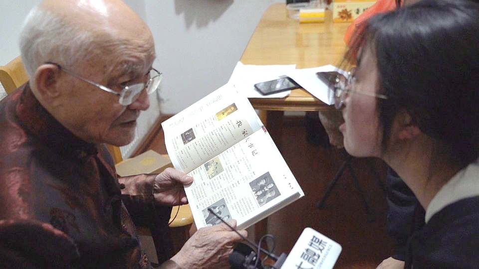 吴滨邑向记者讲述抗美援朝的故事。(黄乐 摄)