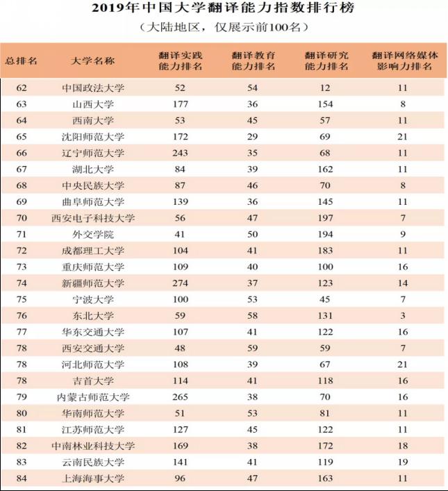 2019年全球国家翻译能力指数排行榜覆盖了全球198个国家和地区,排名前三位分别是美国、英国和中国。中国大学翻译能力指数排行榜覆盖了全国454所设置翻译专业/学科的大学(含434所大陆地区大学、20所港澳台地区大学)。