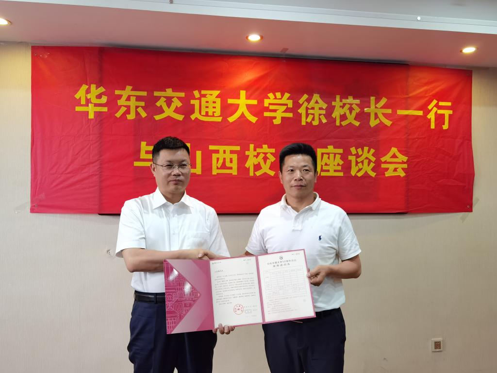 29日上午,“三晋‘花椒’三地同庆母校50年华诞”庆典活动在太原举行。徐长节向龚小华会长授山西校友会会旗,听取晋北、晋南分会场校友们的视频汇报。山西校友会秘书长董超力向母校捐赠《晋绣收藏作品》16幅。整个过程热烈有序,激情昂扬,活动在大家合唱校歌《奋进,华东交大》中落下帷幕。