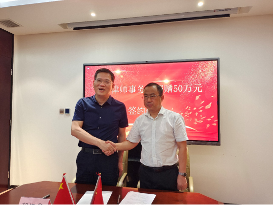 6月1日,肖长春一行走访参观了京鲁律师事务所,与律所主任郝纪勇(1989级电气专业校友)座谈交流。为反哺母校培育之恩,郝纪勇代表山东京鲁律师事务所向母校捐赠50万元,设立“京鲁奖教金”,用于每年奖励5名优秀教师,支持母校的教育事业发展。