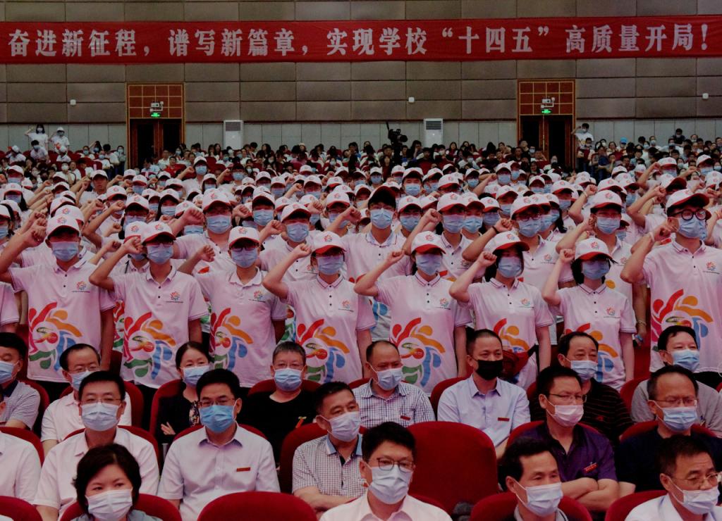 各职能部门负责人,各学院院长、党委书记、副书记、教师代表、学生代表等共1200余人参加动员大会。(黄晓鹤、郑宁璐 摄)