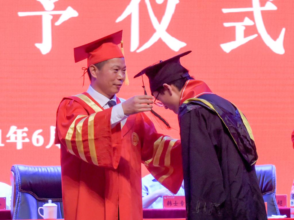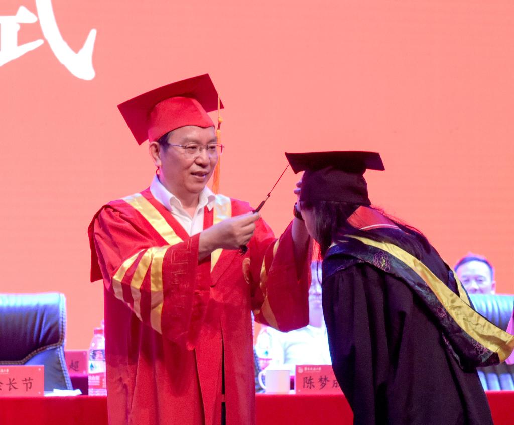 校党委书记柳和生为毕业生代表扶正流苏。
