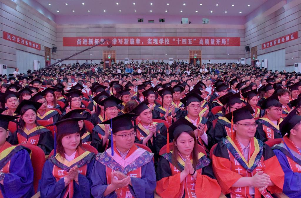 各职能部门主要负责人,各学院院长、党委书记、党委副书记,毕业班辅导员、教师代表、毕业生代表共1200余人参加毕业典礼。(黄晓鹤、罗霄、马莉娅 摄)