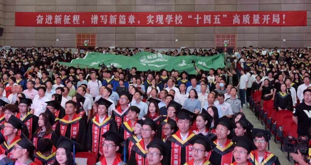 全场合唱校歌《奋进,华东交大》。