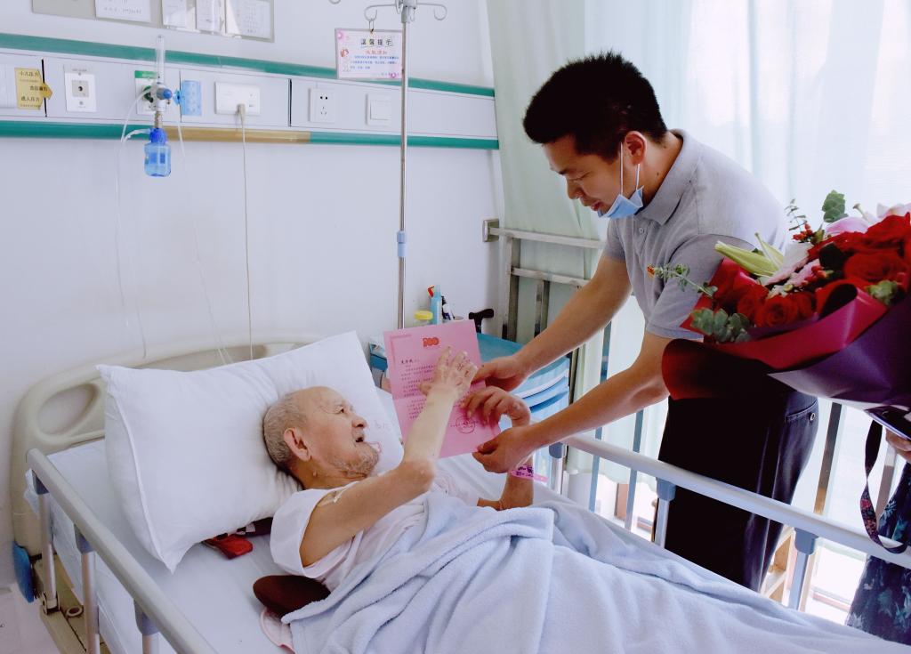 徐长节来到洪都中医院,看望老党员查全斌,并为他佩戴了“光荣在党50年”纪念章,感谢他在学校建设发展过程中作出的贡献以及长期以来对学校工作的关心和支持。徐长节亲切询问老同志的身体状况和生活起居,希望他多休息,好好调养身体。