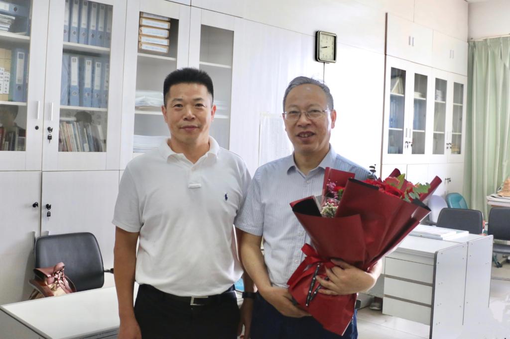 在土建学院副教授、原建筑系主任黄鹢的办公室,徐长节与他亲切交谈,感谢他任教37年来勤勤恳恳为学校作出的贡献。