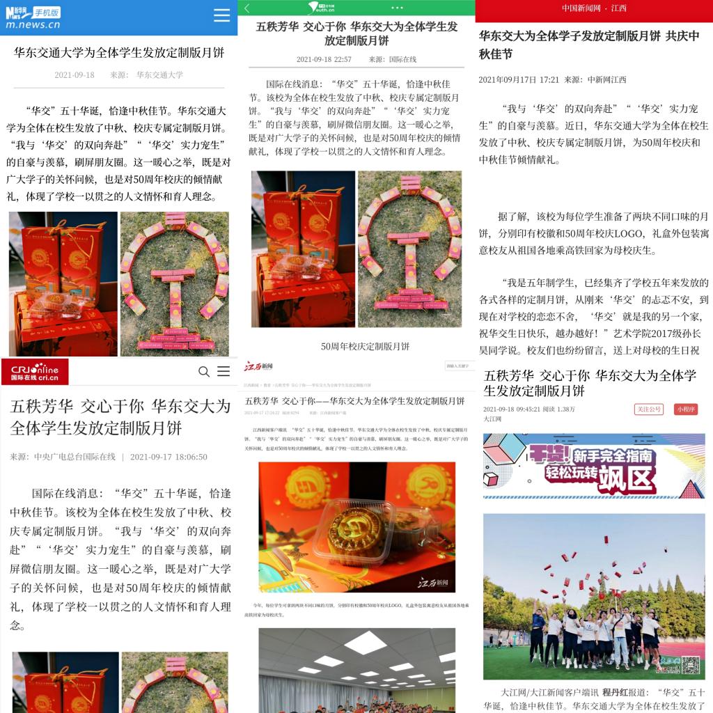 【中国青年网】五秩芳华 交心于你 华东交大为全体学生发放定制版月饼