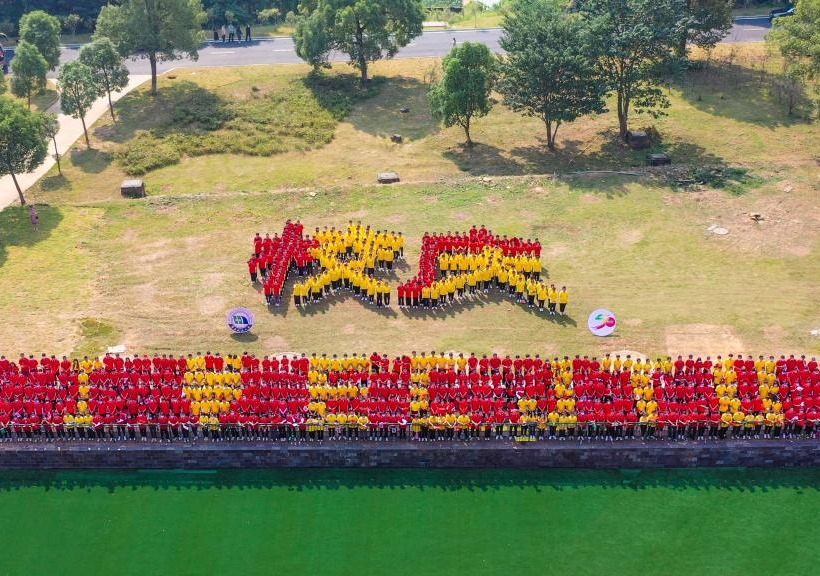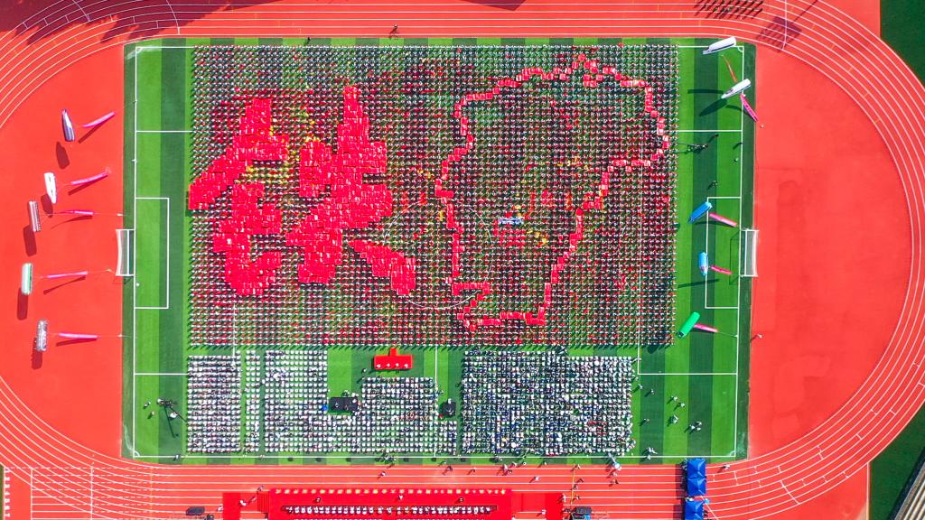 《星辰大海》《二十年后来相会》《赞赞新时代》《青春畅想》……大会开始前,4000名2021级大一新生组成4个巨型方阵,共同唱响昂扬奋进的青春旋律。在万众欢呼中,“贵赣情·校友行”千里接力“风火轮”跑团,与各地校友代表和师生代表,豪迈地迈进大会现场。伴随着热情铿锵的青年学生献词,巨型方阵变换成中国共产党成立100周年庆祝活动标识、中国地图、中国铁路路徽等图案或字样,彰显了全体华交人铁心跟党走、铁肩担使命的赤诚与担当。