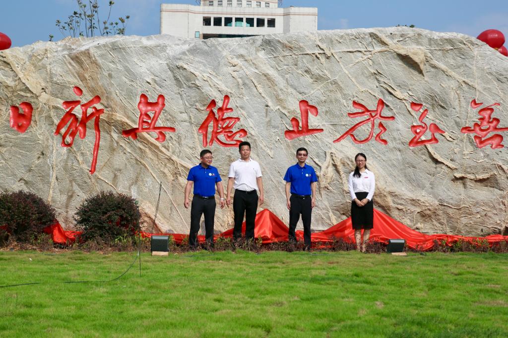 徐长节、罗文俊和校友为泰山石揭幕。