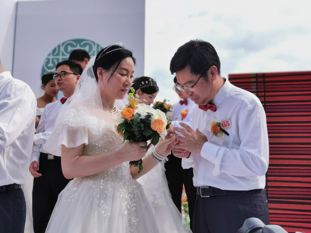 金宗斌、贾瑞珍夫妇作为见证人为50对伉俪送上祝福。