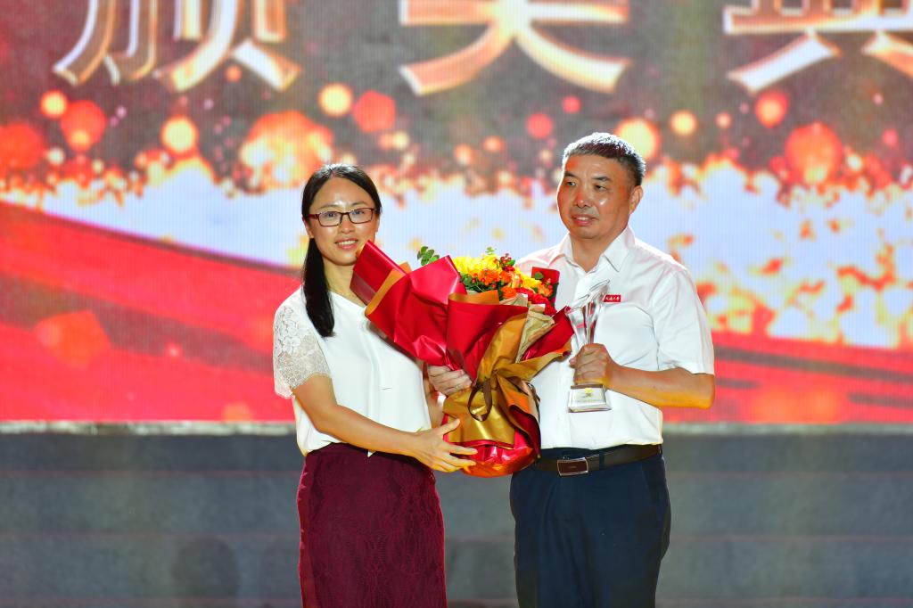 校党委副书记、副校长(主持行政工作)徐长节为“感动花椒人物”李爱群颁奖