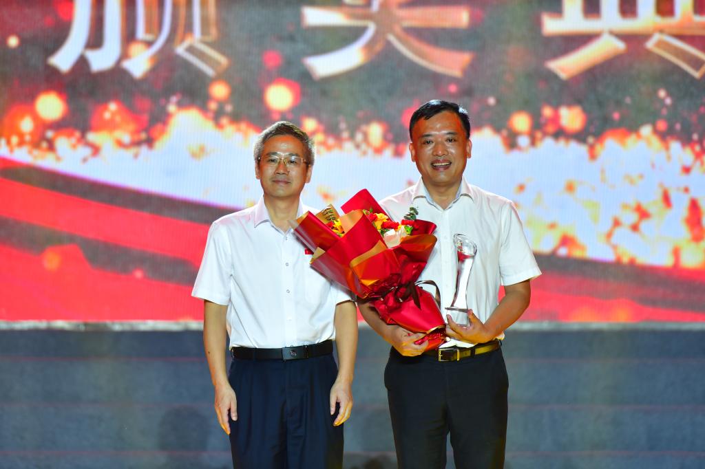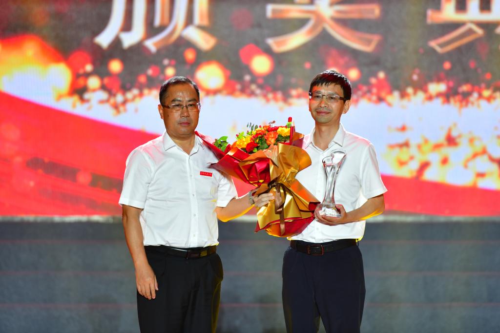 校党委副书记、副校长(主持行政工作)徐长节为“感动花椒人物”杨耀乾颁奖