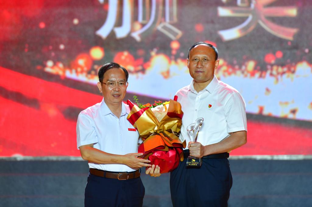 校党委副书记肖长春为“感动花椒人物”温永鸿颁奖