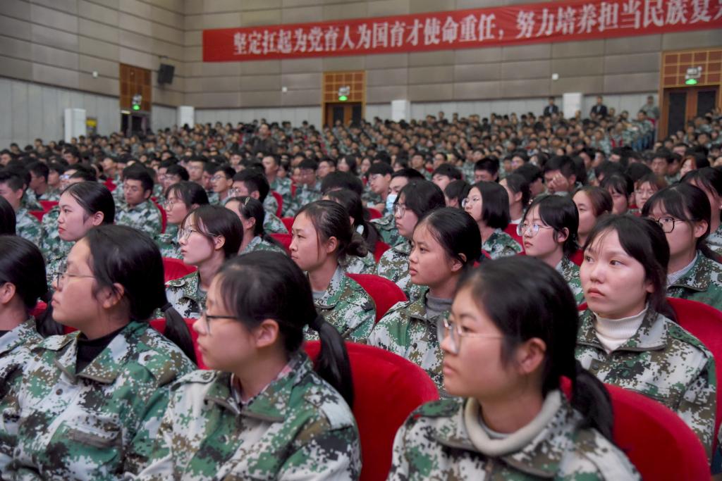 武装部、党办校办、宣传部、学团(资助中心、双创中心)、法规处(高教所)、教务处(评估中心)、研究生院(研工部)、招就处、资产处、计财处、外联处(校友办、基金会)、后勤中心、网信中心、图书馆、附属医院负责人,各学院党委副书记、学工办主任、2021级新生辅导员、2021级部分新生聆听了此堂思政课。(摄/陈君)