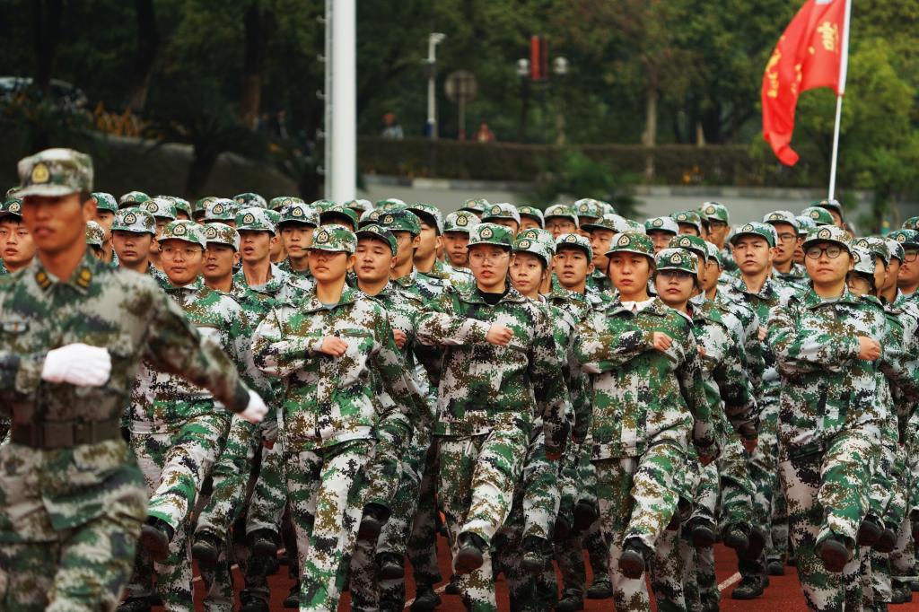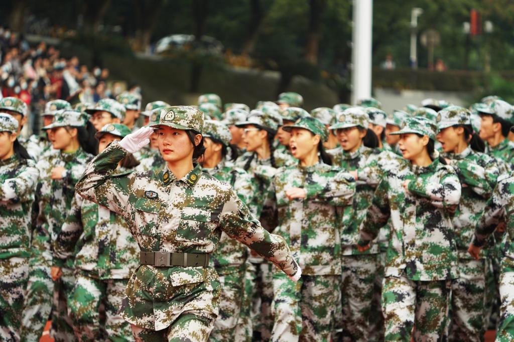 2021级开学典礼暨军训汇演现场。