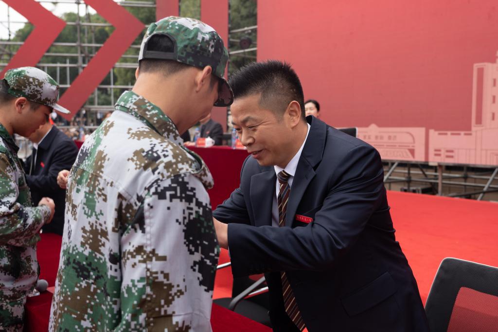 校党委书记柳和生出席开学典礼并下达军训汇演开始指令。
