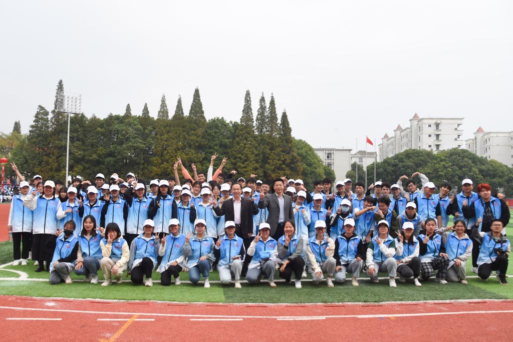 校党委书记柳和生,校党委副书记、校长徐长节与志愿者合影留念。