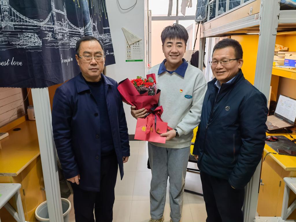 校党委副书记、校长徐长节走访慰问青年教师丁孺琦。