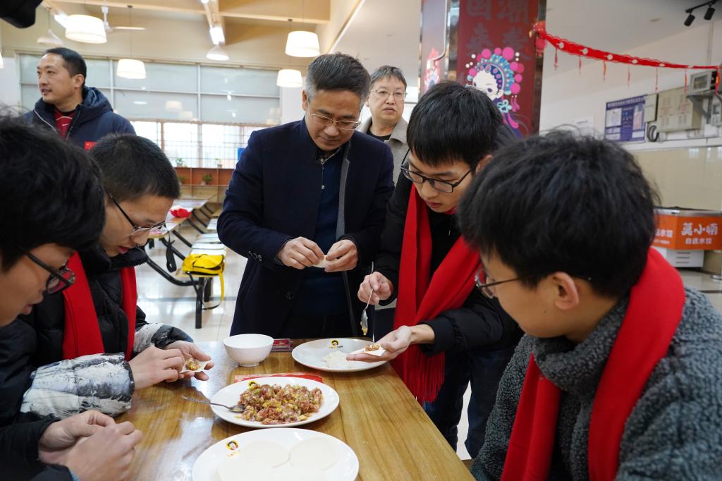 在活动现场,柳和生和学生们一起包饺子、唠家常,共吃团圆饭,并为留校学生送上压岁红包及新年慰问品。他表示,学校就是学生的另一个家,要让每一位留校过年的同学都感受到“家虽远在天边,但家人就在身边”,要始终把学子当孩子,把学生放心中。