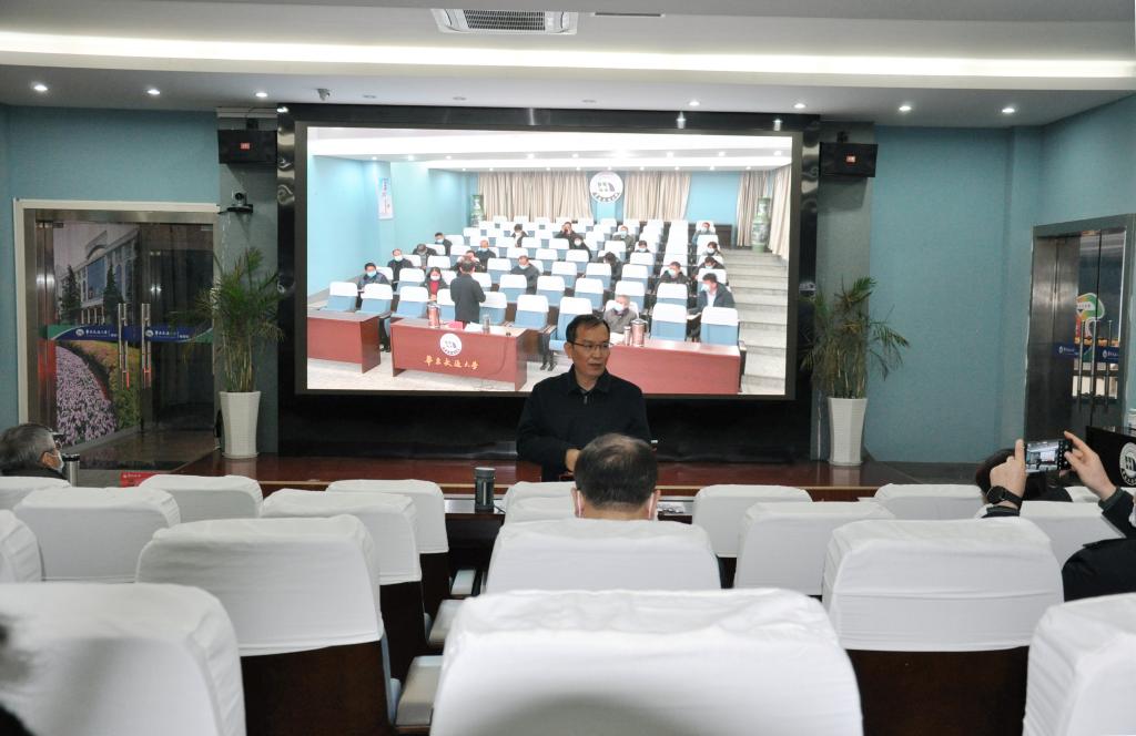 党办校办、宣传部、纪委机关、教工部、离退处、学工处、团委、保卫处、教务处、研工部、招就处、国交处、后勤中心、华交科技产业集团、附属医院、附属子弟学校、继教学院负责人参加会议。