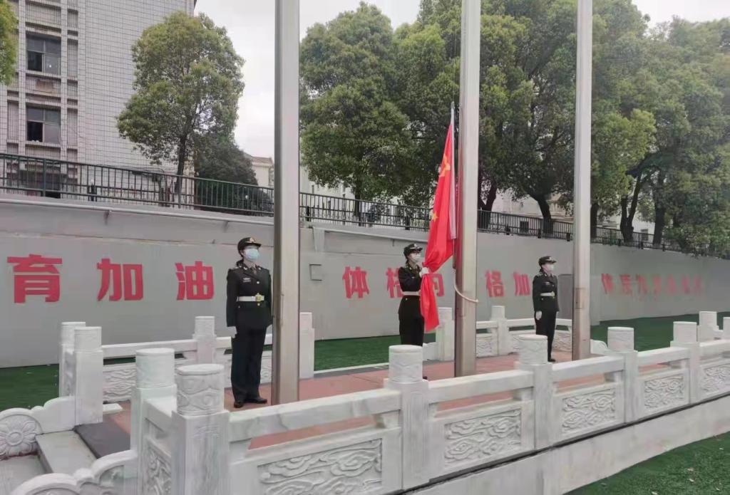 迎着清晨的第一缕阳光,曾芝华和两名队友昂首阔步,踏着坚定的步伐,护送国旗走向升旗台。国歌奏响,升旗手振臂一挥,五星红旗冉冉升起。升完国旗后,曾芝华和队友便立刻赶往核酸检测点站岗。“虽然时间很赶,但这是我们坚守的使命。”疫情的特殊时期,每天早晨7点,鲜艳的五星红旗都会准时在校园升起,那迎风飘扬的一抹红色给疫情防控中的师生带来了勇气和信念。