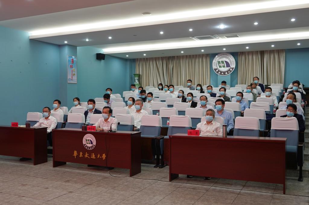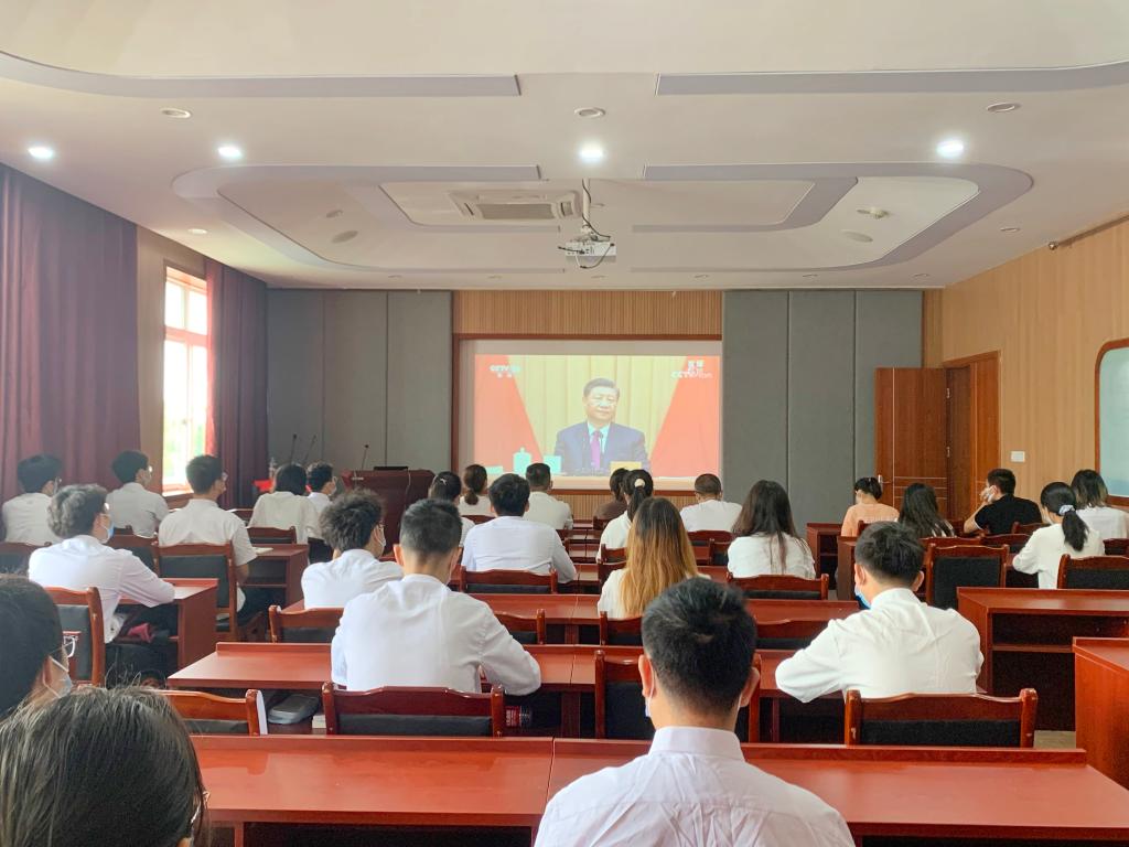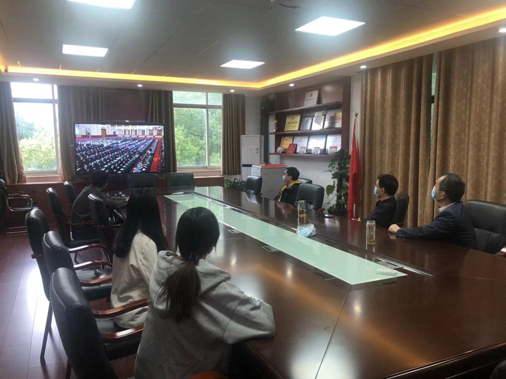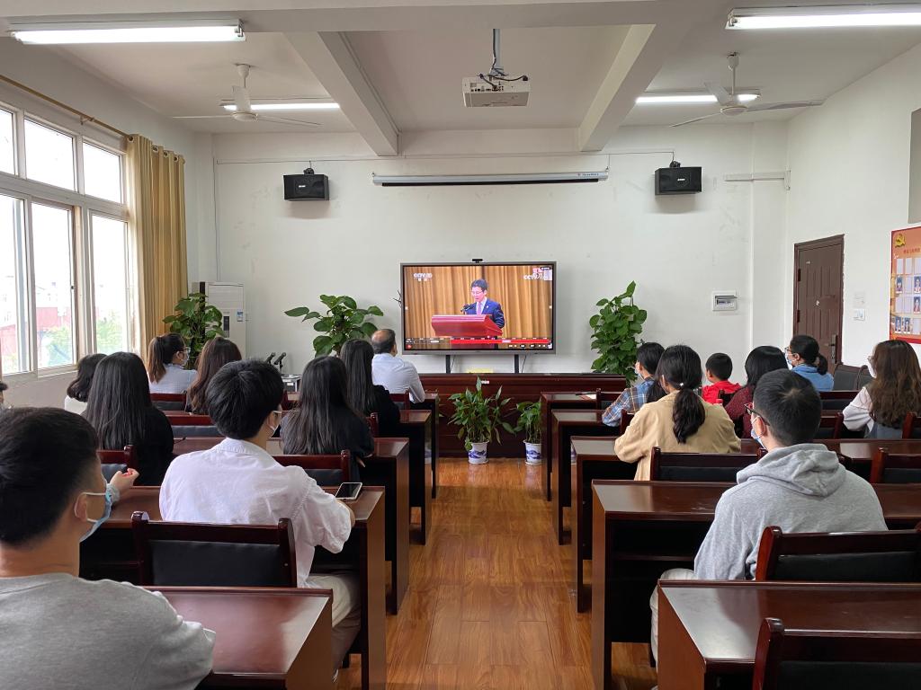 校党委书记柳和生,校党委副书记肖长春,校党委委员、副校长范勇以及各党群部门主要负责人、各学院党委副书记在视频会议室集中观看大会直播。