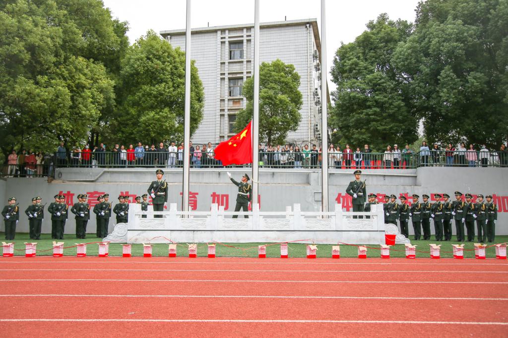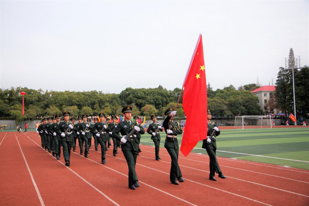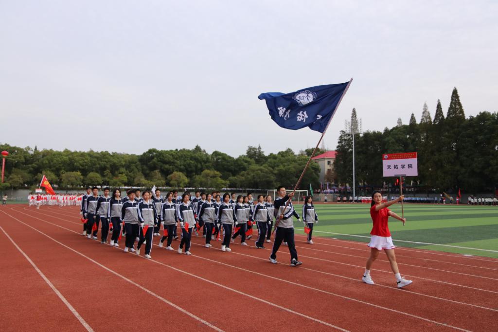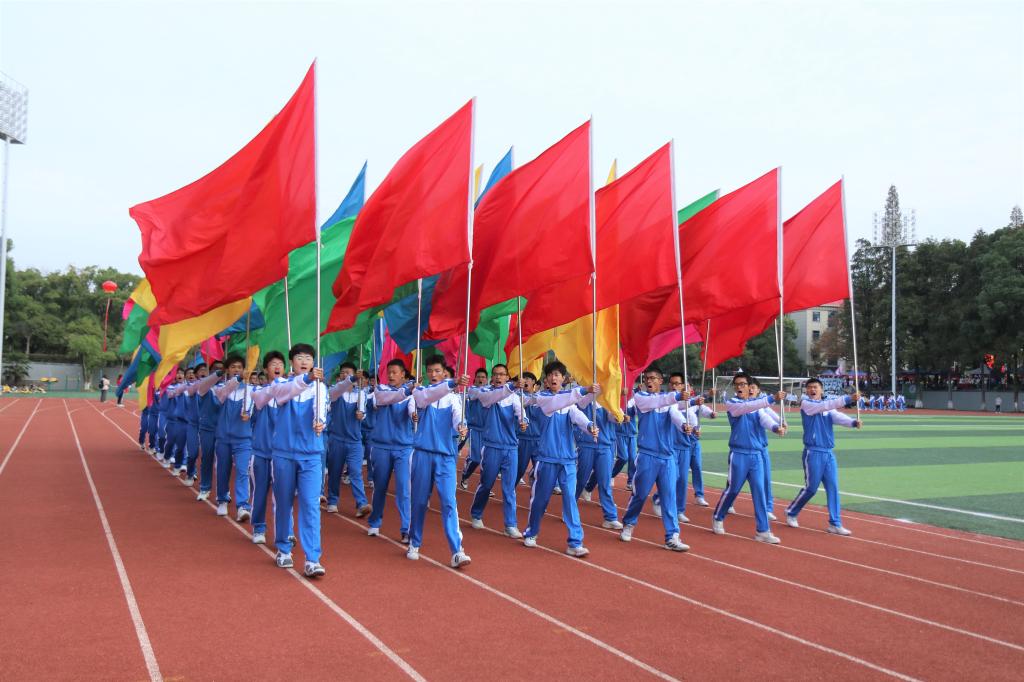 伴着慷慨激昂的《运动员进行曲》,国旗队、校旗队、彩旗队和19个师生方阵队依次入场,他们斗志昂扬,步履坚定,喊着响亮的口号,昂首阔步向主席台走来,展现出蓬勃朝气与青春活力。