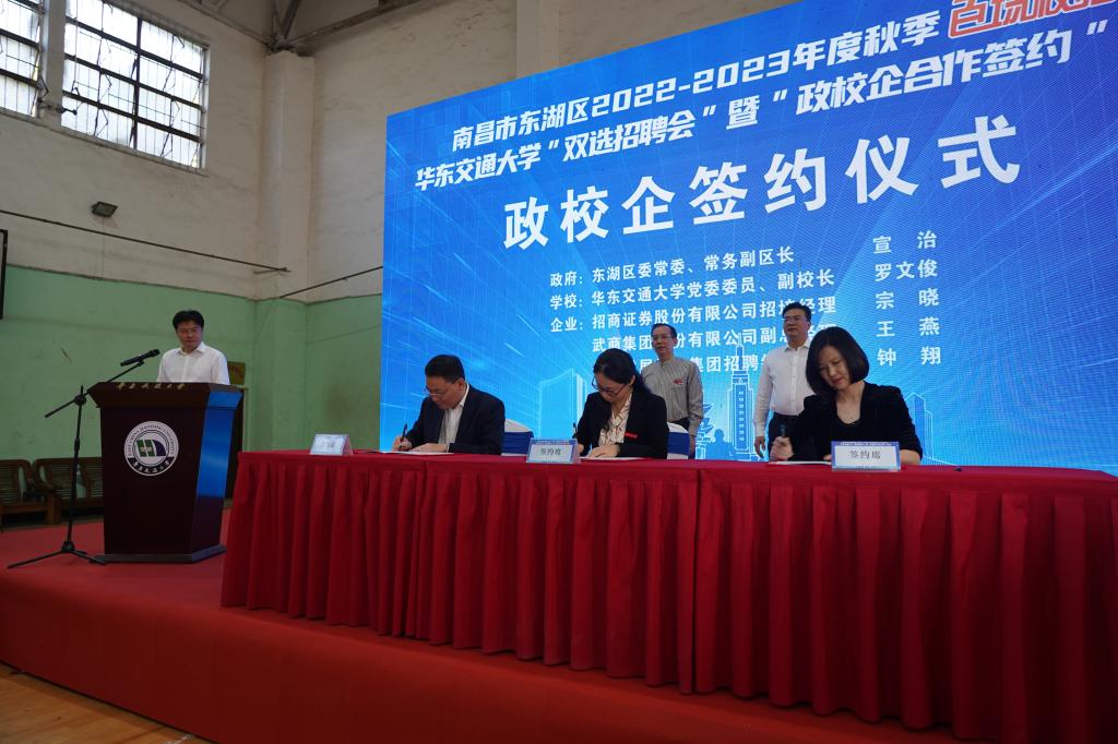 高辉红指出,华东交大培养了一大批专业基础好、实践能力强、综合素质高、家国情怀浓的应用型人才。近年来,东湖区制定了“人才优服”制度,搭建了“人才优服”平台,为人才当好需求帮办员、政策宣讲员、生活服务员,落户有奖励、就业有补贴、创业有扶持、购房有实惠,让人才在东湖区办事一路绿灯、创业一路顺风、发展一路长虹,真正安得住身、安得下心、安得好家。东湖区诚邀优秀学子拥抱东湖、加入东湖、扎根东湖,作为东湖事业“合伙人”,共赴“一起向未来”的时代之约。