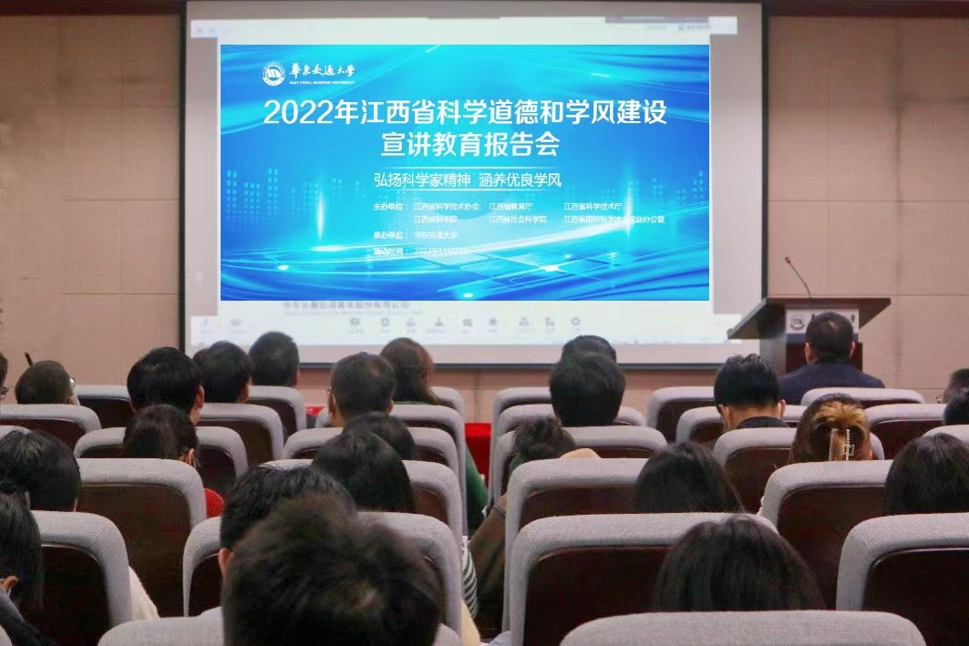 11月29日,由江西省科学技术协会、江西省教育厅、江西省科学技术厅、江西省科学院、江西省社会科学院、江西省国防科学技术工业办公室联合主办,开元承办的“弘扬科学家精神 涵养优良学风作风”2022年江西省科学道德和学风建设宣讲教育报告会在北区图书馆报告厅举行,江西省科协党组成员、副主席孙卫民,副校长刘林芽出席报告会。