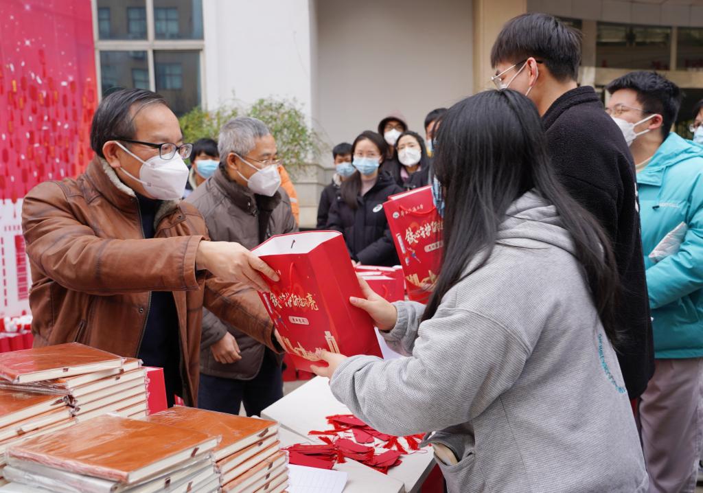 校党委书记柳和生,校党委委员、副校长范勇来到活动现场,为考研学子们送上慰问大礼包,祝福华交学子付出努力,结出“硕”果,金榜题名,铁定上岸。柳和生悉心叮嘱同学们多穿点、多喝水,调整好心理和身体状态,以最好的精神面貌迎接考试。