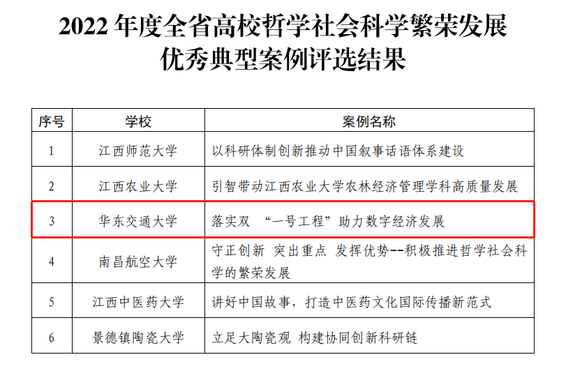 近日,江西省教育厅公布了2022年度全省高校哲学社会科学繁荣发展优秀典型案例,开元经管学院欧阳志刚、周才云教授撰写的《落实双“一号工程”助力数字经济发展》案例成功入选(全省共6项)。
