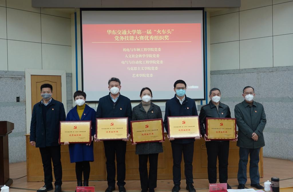 校党委书记柳和生,校党委副书记、校长徐长节为学校第一届“火车头”党务技能大赛优秀组织奖获奖单位颁奖。