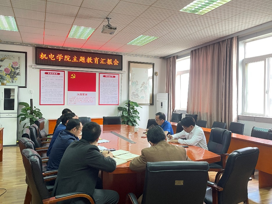 柳和生认真听取了机电学院党委负责同志关于学院目前主题教育工作进展、存在问题及特色亮点的情况汇报,详细了解了领导班子成员调查研究、推动发展、检视整改等方面的工作进度。