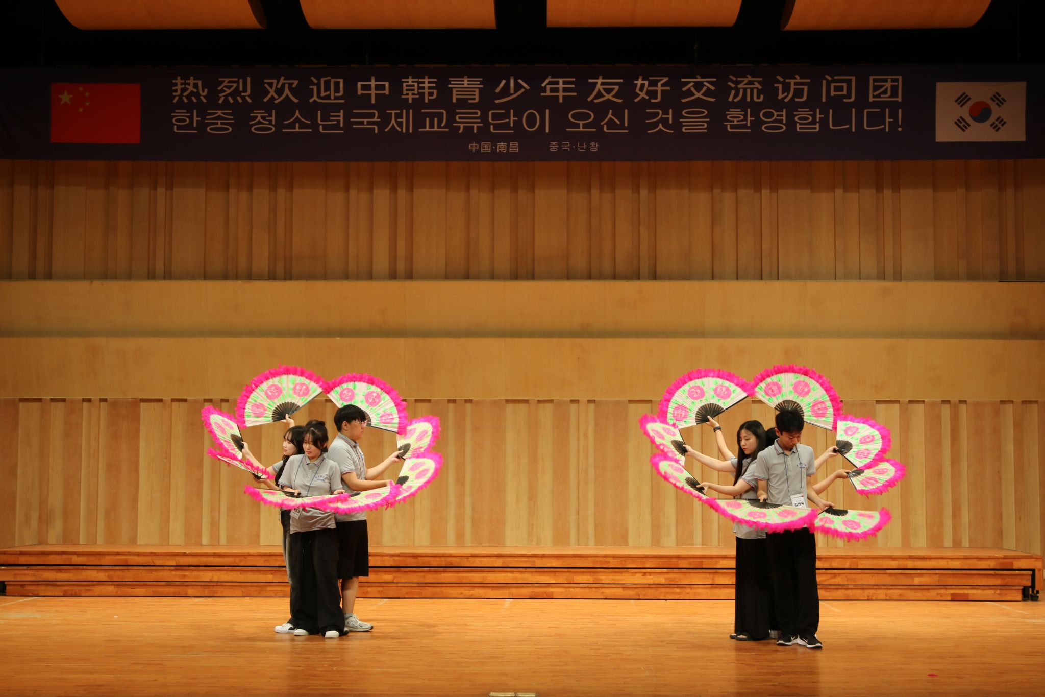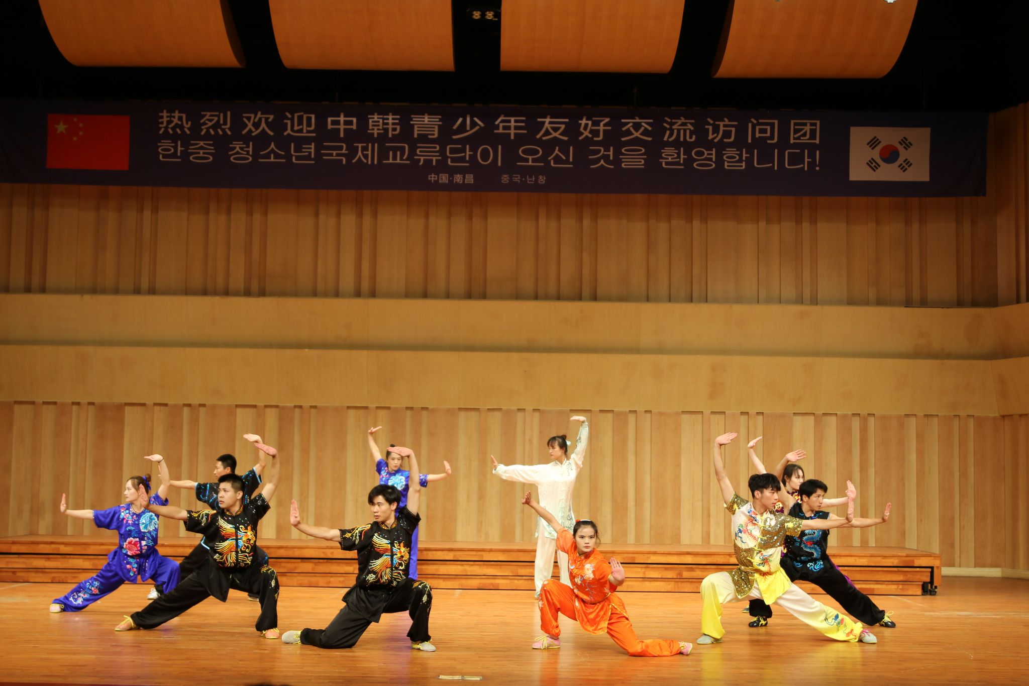 欢迎仪式上,开元师生表演的二胡独奏《花儿为什么这样红》《赛马》、武术《中华武魂》、舞蹈《孤月杳然》,通过悠扬的旋律、刚柔并济的武术动作和极具特色的舞蹈演绎消弭了语言的隔阂,充分展示出中华优秀传统文化的魅力。访问团带来了歌曲演唱《眼、鼻、嘴》、舞蹈表演《KPOP remix》《扇子舞》,以优美的舞蹈动作和独特的表演风格展示了悠久文化传承与青年活力的碰撞。