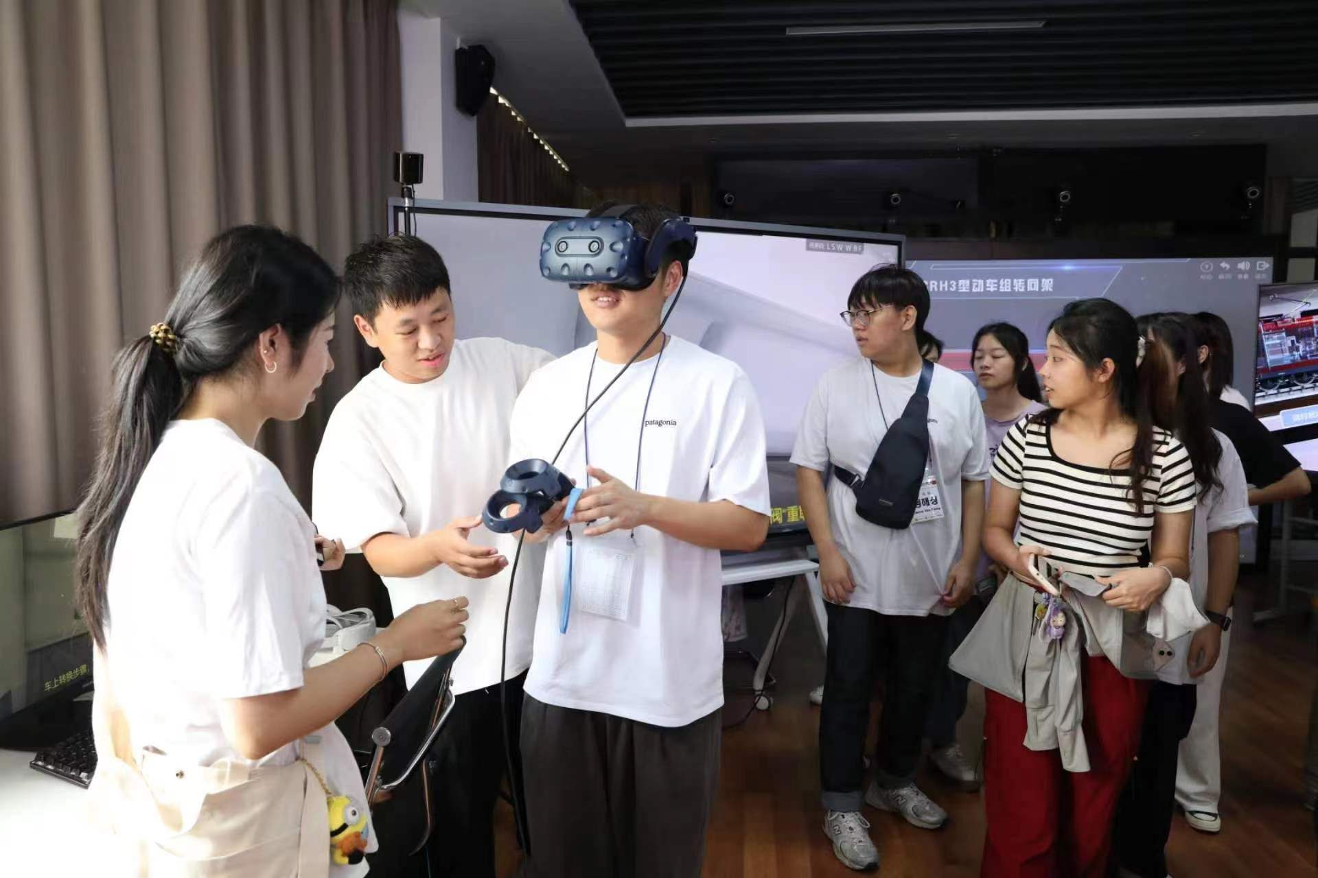 访问团成员参观了轨道交通基础设施性能监测与保障国家重点实验室,深入了解实验室主要研究内容和代表性研究成果,体验了乘务员VR系统、基于Hololens的HXD3D型电力机车运行状态监控系统和重载列车模拟驾驶系统,对学校交通特色及科研成果赞叹不已。